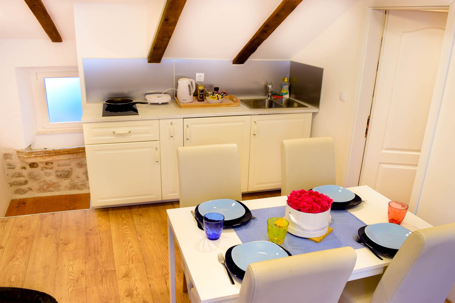 3 studios and the attic apartment have a kitchenette.